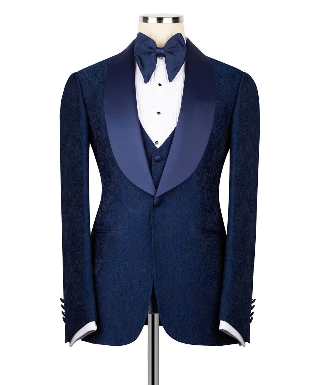 Navy Jacquard Shawl Collar Tuxedo